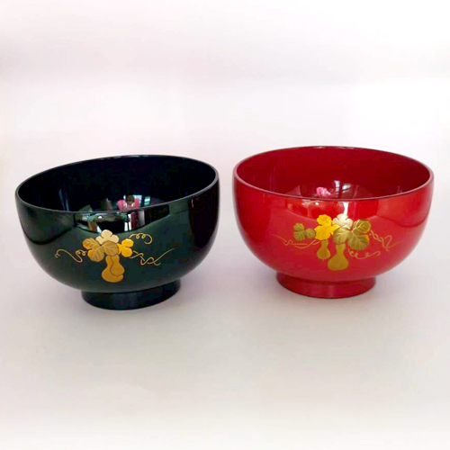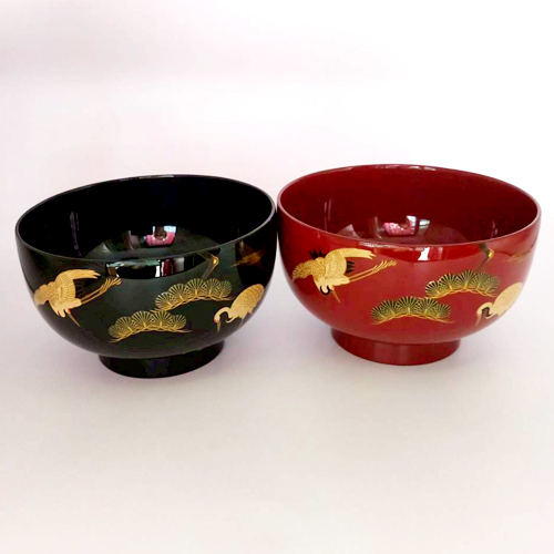輪島塗 夫婦椀 蒔絵 鶴に松