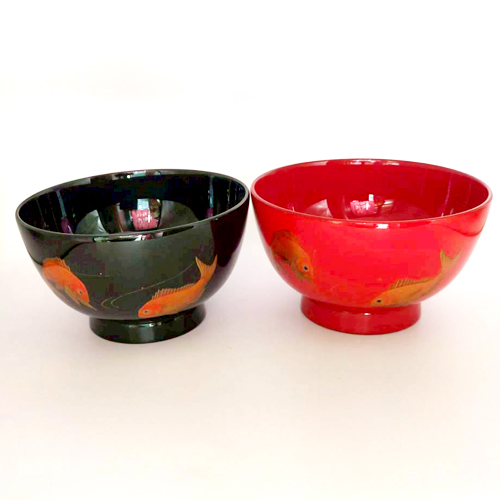 輪島塗 祝盃 赤黒 蒔絵 鯉